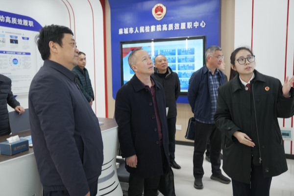 沈勇一行先后参观了高质效履职中心、矛盾化解新“枫”工作室、新媒体工作室、检察监督文化墙、代表委员及人民监督员联络工作室、未成年人成长警示教育基地等,详细了解各功能区域的建设理念、运行模式和工作实效,直观感受麻城检察在履职创新、为民服务、文化育检、普法宣传等方面的特色亮点。