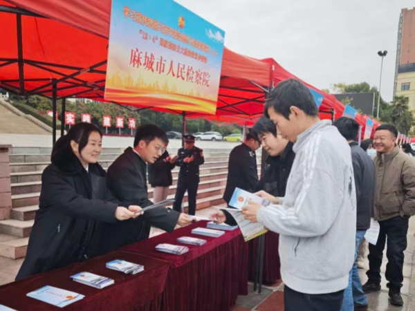 12月4日上午,麻城市检察院干警走进市会展中心,开展“国家宪法日”法治宣传与咨询活动。活动现场,干警们通过摆放宣传展板、发放宪法读本及法治宣传手册、现场答疑等方式,向群众普及宪法及民事、行政、公益诉讼等领域法律法规。针对群众关心的婚姻家庭、劳动纠纷、未成年人保护等热点问题,干警们以案释法、耐心讲解,引导群众树立“办事依法、遇事找法、解决问题用法”的法治理念。