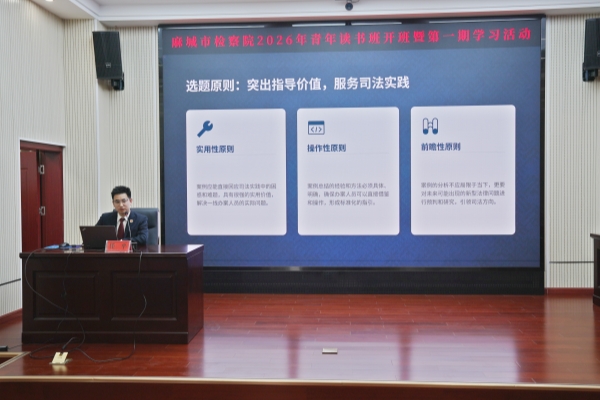 随后,青年读书班班长毛威解读《2026年青年读书班活动方案》,明确全年学习计划、活动安排与目标要求;第二检察部主任常荣义解读《优秀公诉人培训专项计划》,聚焦出庭能力、释法说理、庭审规范等核心素能,为青年公诉人成长明确方向、划定路径。