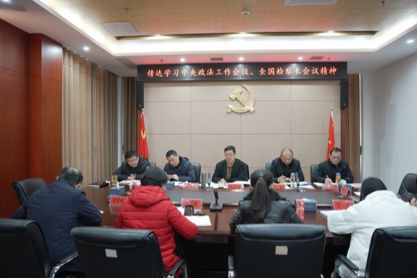 1月27日,麻城市检察院召开党组会,传达学习中央政法工作会议、全国检察长会议精神,研究部署贯彻落实措施。院党组书记、检察长肖志飞主持会议并讲话,全体班子成员参会。